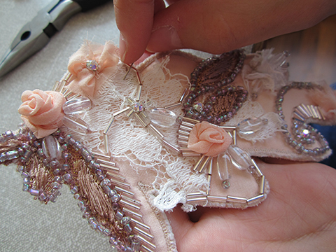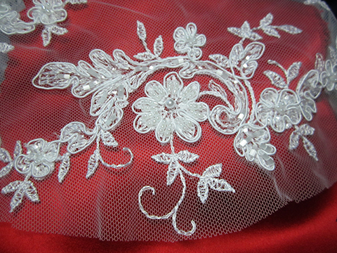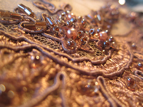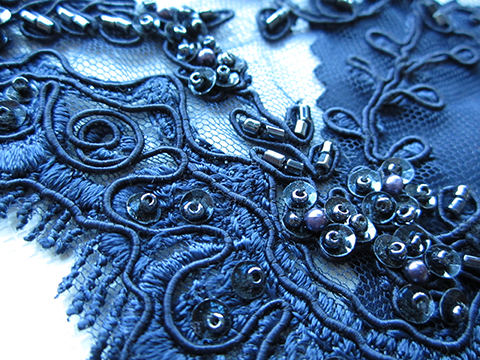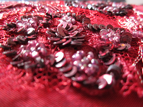 Hauptsächlich habe ich mich auf Seide, Spitze und wunderschöne-Perlentüllstickerei für festliche Kleider spezialisiert.