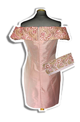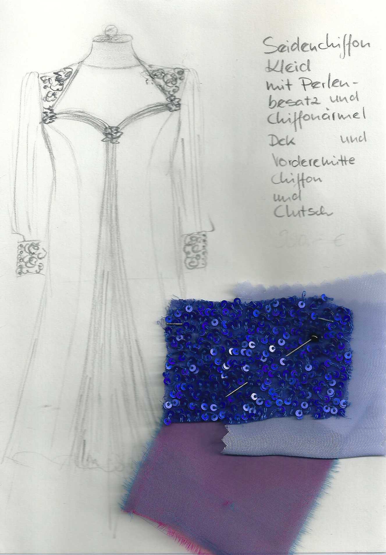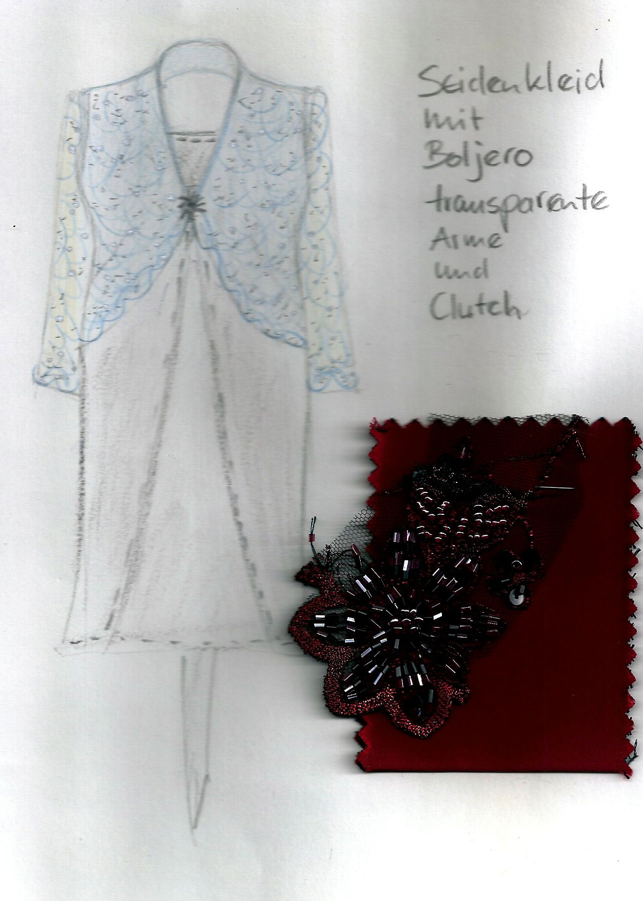 Jede Kundin mit einem festlichen Kleidungsstück bekommt von mir eine zum Modell passend, gestaltete Clutch(Handtasche)aus dem gleichen Stoff extra dazu.