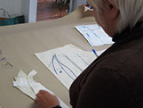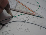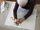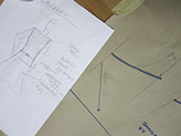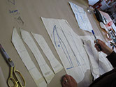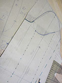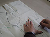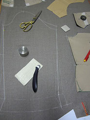 Mit den gemessenen Maßen wird nun der Maßschnitt für das Modell als Papierschnitt konstruiert. Das ist der wichtigste und aufwändigste Schritt bei der Anfertigung eines maßgeschneiderten Kleidungsstückes! Hierbei kommt jede persönliche körperliche Besonderheit zum Tragen und wird in den Schnitt einbezogen.