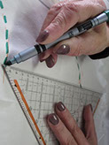 Bei der Anprobe wird die Weite an den Nähten abgesteckt, die Länge abgerundet und Details besprochen. Dazu gehört z.B. der Sitz einer Klappentasche, die Anzahl und der Abstand der Knöpfe oder andere gewünschte Finessen. Auch werden Verzierung, Bänder, Rüschen etc. veranschaulicht angesteckt, insofern das Modell dieses vorsieht.