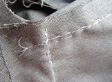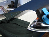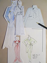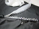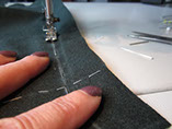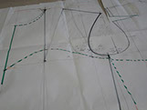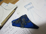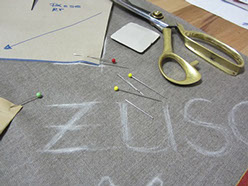 Nach der Anprobe wird das gesteckte Modelles nach einem bestimmten Kennzeichnungssystem abgeändert. Futter, Belege, Taschen, Krägen etc. werden jetzt zugeschnitten und verarbeitet. Verschlüsse, wie Knopflöcher oder Reisverschlüsse arbeite ich jetzt endgültig ein. Säume werden nun fertig gesäumt, Futter einstaffiert, Spitzen oder Perlenstoff auf Ausschnitte von Hand appliziert.