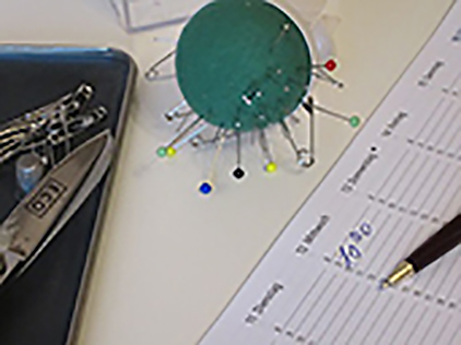 Zur ersten Anprobe vereinbaren wir jetzt einen Termin. Bei größeren festlichen Kleidern, wie Brautkleidern, Abendkleidern oder terminbezogenen Kostümen, sollten wir hier einen genauen Anprobeplan festlegen. Für große aufwändige Modelle sind mit ca. 2-4 Monaten zu Rechnen. Hosen und Röcke können in 2-4 Wochen fertig sein -je nach Auftragslage im Atelier.