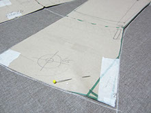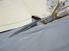 Nachdem der Schnitt auf Papier erstellt und die einzelnen Teile ausgeschnitten sind, werden diese auf den ausgewählten Stoff gelegt, mit Schneiderkreide auf den Stoff abgezeichnet und ausgeschnitten. Bei aufwändigen Braut- oder Abendkleidern schneide ich manchmal zur ersten Anprobe ein Probemodell aus einem Nessel-Stoff zu. Das hat den Vorteil, dass ich verschiedene Linienführungen und Detail gestalten und diese für die Sie zur Auswahl veranschaulichen kann.