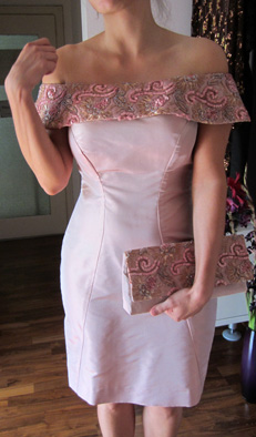 Jede Kundin mit einem festlichen Kleidungsstück bekommt von mir eine zum Modell passend, gestaltete Clutch(Handtasche)aus dem gleichen Stoff extra dazu.