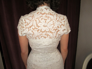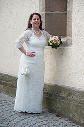 herzlichen Dank für das tolle Brautkleid, das Sie mir auf den „Leib geschneidert“ haben! Ich bin mit einer groben Idee zu Ihnen gekommen und Sie haben daraus mit guten Ideen, viel Engagement und viel Können ein wunderbares Hochzeitskleid mit passendem Mantel gemacht!